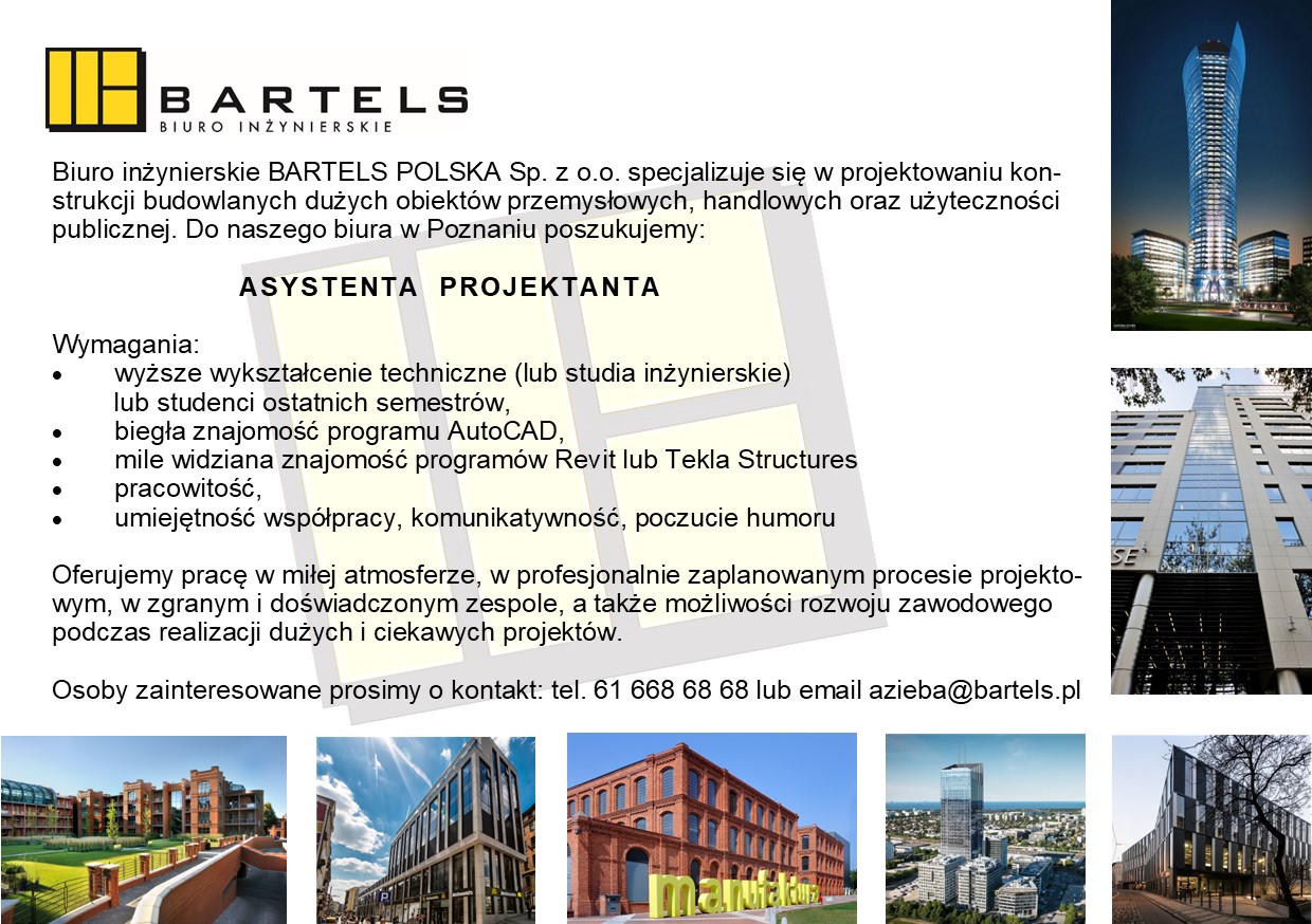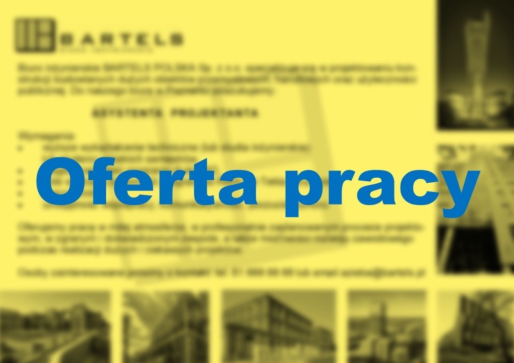 Data dodania 06.10.2025 Udostępnij: Oferta Pracy - Biuro inżynierskie BARTELS POLSKA Sp. z o.o. Language PL