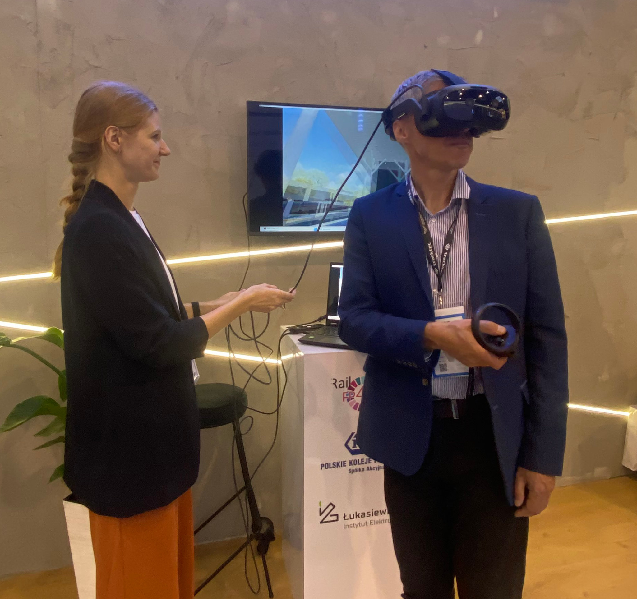 Równolegle do tych wydarzeń, na stoisku wystawowym PKP S.A. poświęconemu rezultatom projektu Rail4Earth mgr inż. Alicja Krajewska (WILiT) prezentowała wirtualny spacer w okularach VR. Ponadto na stoisku zaprezentowana została makieta modułowego dworca wykonana przez dr inż. arch. Borysa Siewczyńskiego (WA), który również przygotował prezentowaną wizualizację VR wirtualnego modelu dla wykonanej przez dr inż. Monikę Siewczyńską (WILiT) autorskiej koncepcji innowacyjnego budynku dworca modułowego.